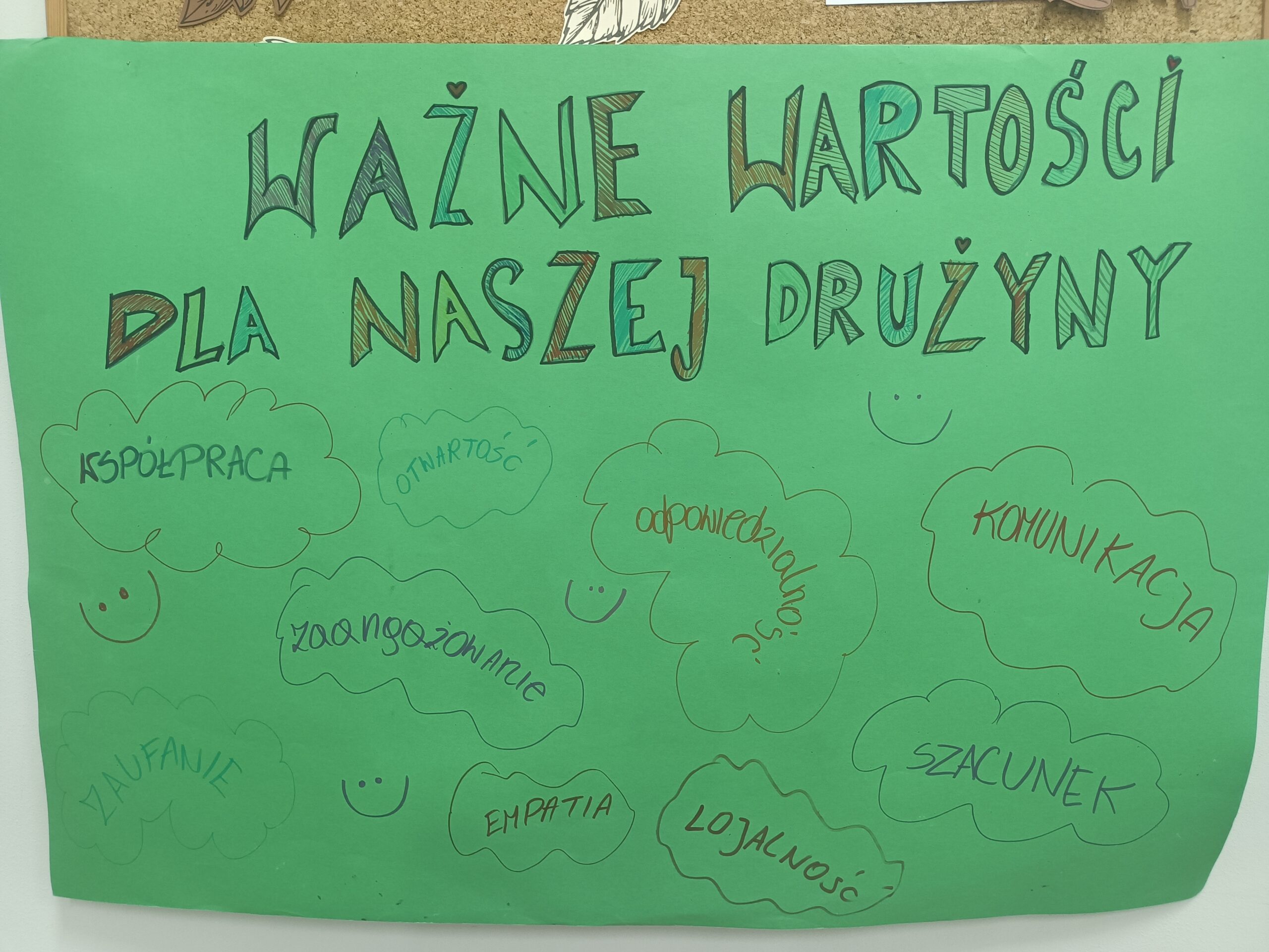 Rozmawiamy o wartościach naszej drużyny. Przeprowadziliśmy dyskusje o najważniejszych wartościach dla naszej drużyny i sporządziliśmy o nich plakat. Dowiedz się więcej