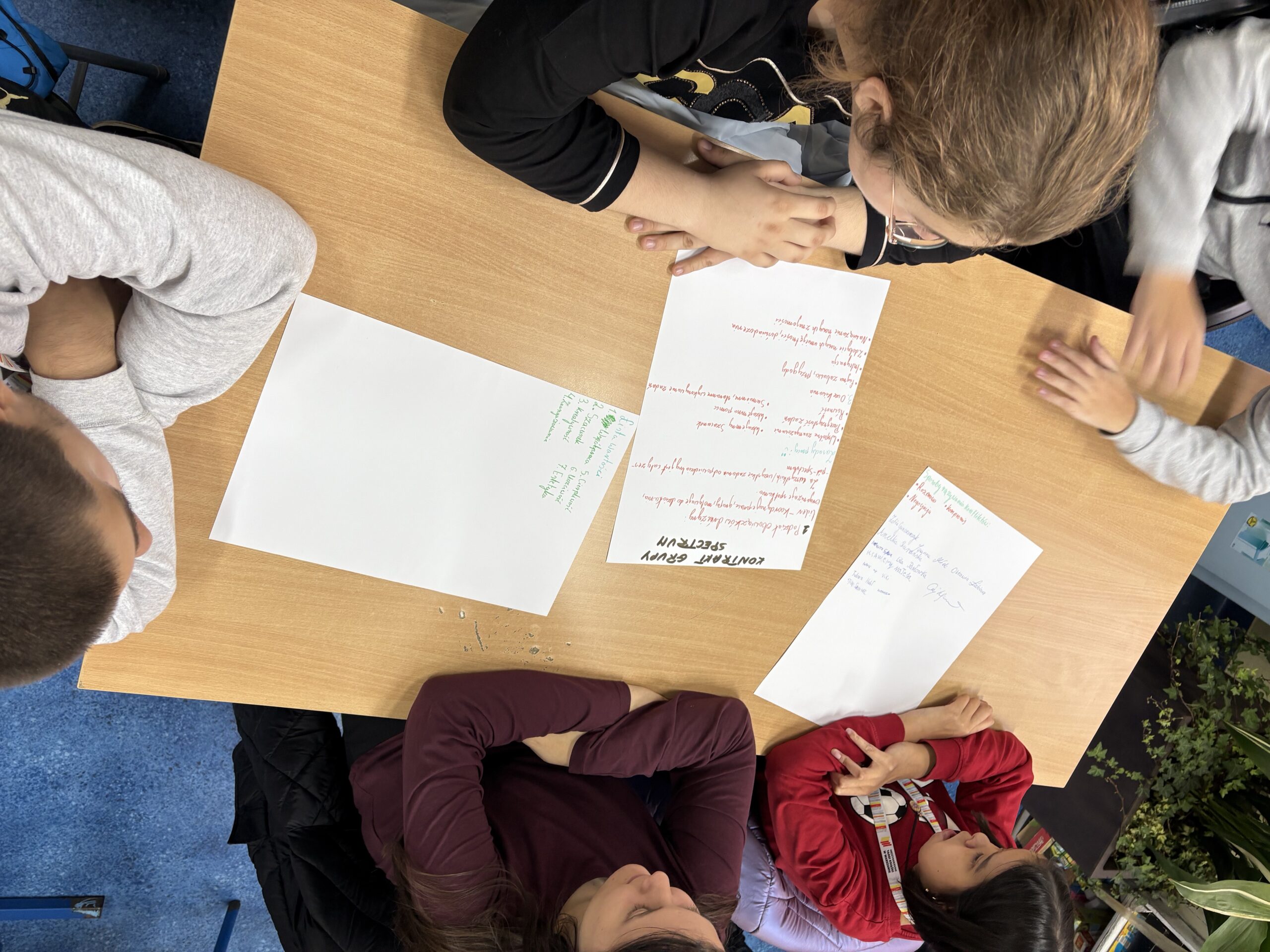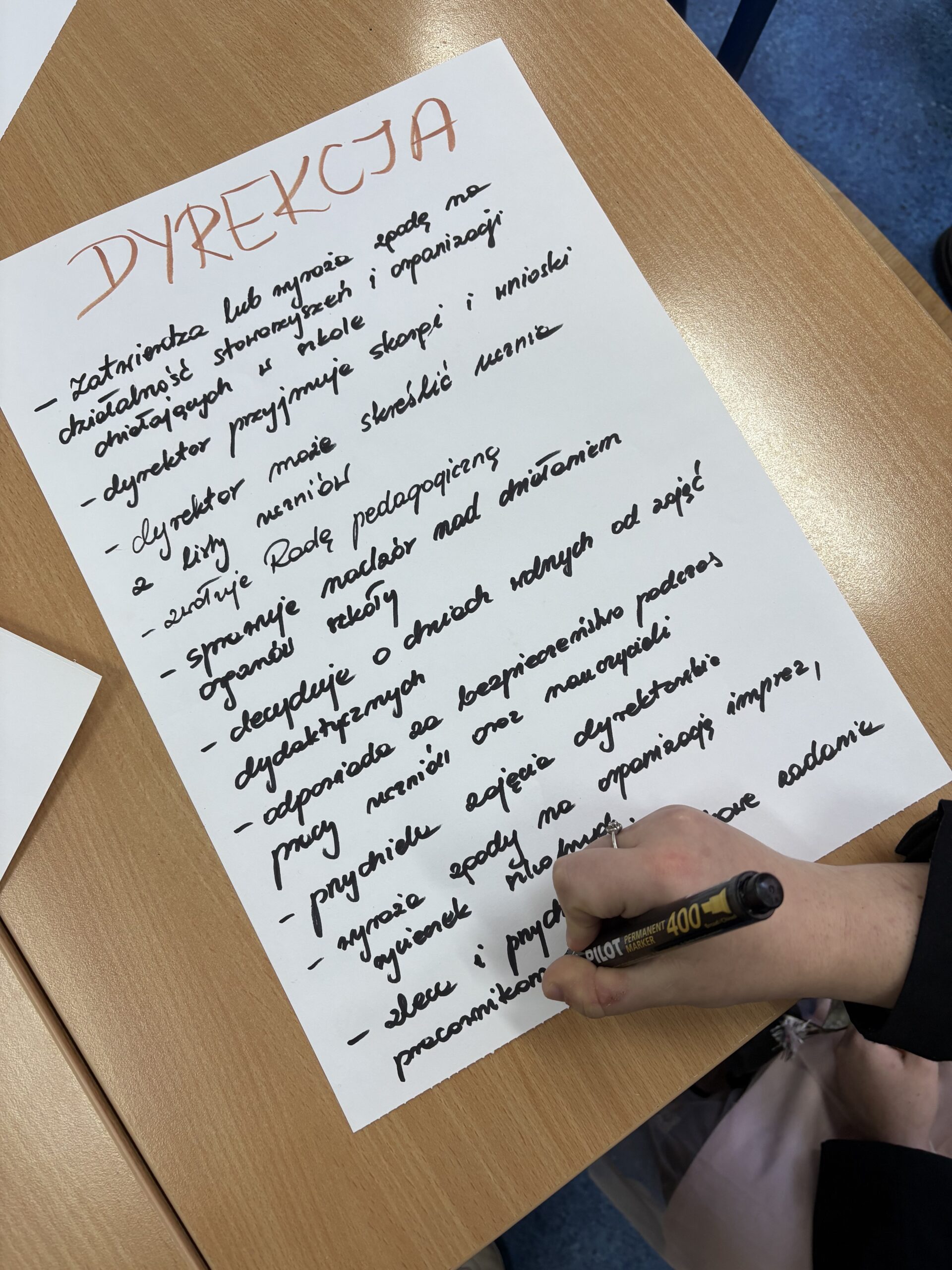 Zadanie 3 – szkoła a demokracja Uczniowie spotkali się w celu stworzenia mapy szkolnej z wyróżnieniem dyrekcji, nauczycieli i samorządu szkolnego – opisania ich decyzyjności. Grupa działa prężnie, ciesząc się, że kolejne wyzwanie jest tak ciekawe! Dowiedz się więcej
