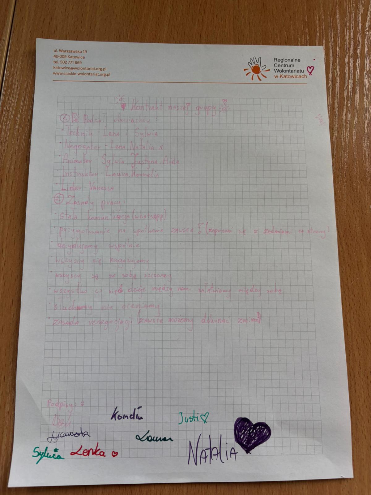 Zadanie 1 – kontrakt zespołu Podczas zajęć stworzyliśmy kontrakt , w którym wspólnie ustaliliśmy zasady współpracy i komunikacji w zespole. Dowiedz się więcej