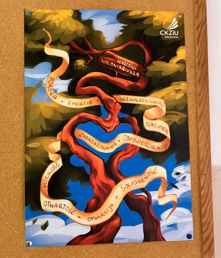 • plakat z wartościami umieszczony na tablicy w szkole,