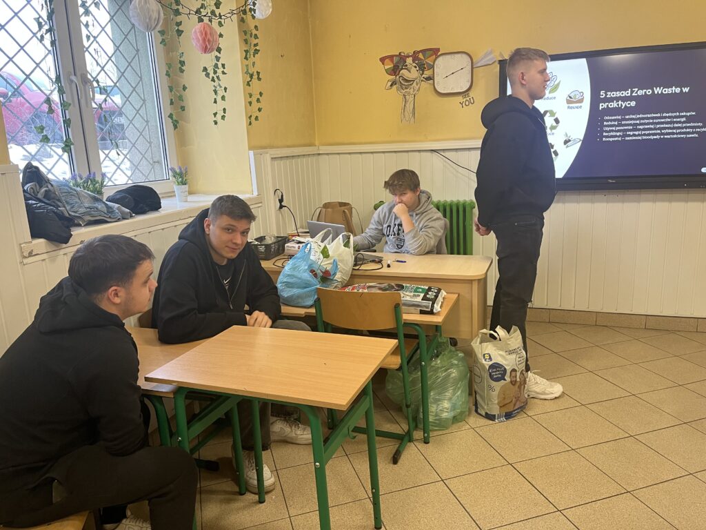 7 wolontariuszy przygotowało świetne warsztaty, opowiadające o filozofii zero-waste. Prezentacja, quiz na kahoocie, a potem wspólne sadzenie roślin w doniczkach, które otrzymali z recyklingu – to wszystko zagwarantowali uczniom klasy 6 ze Szkoły Podstawowej nr 8 w Zawierciu. Przyjemne i pożyteczne!