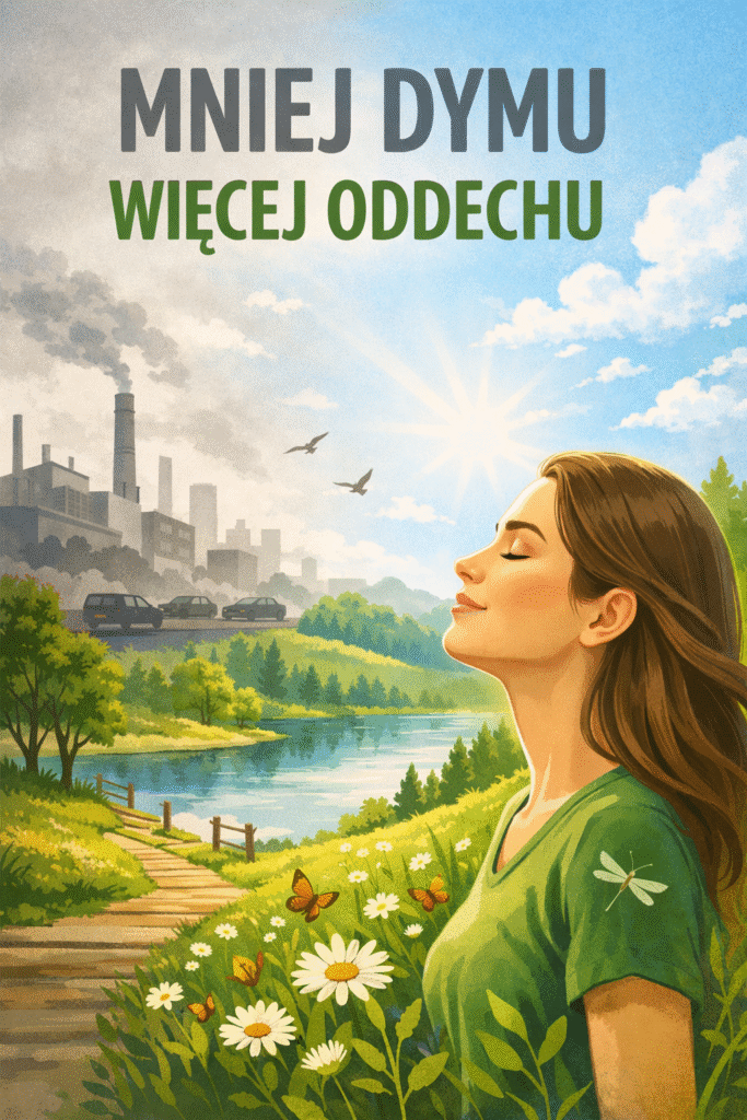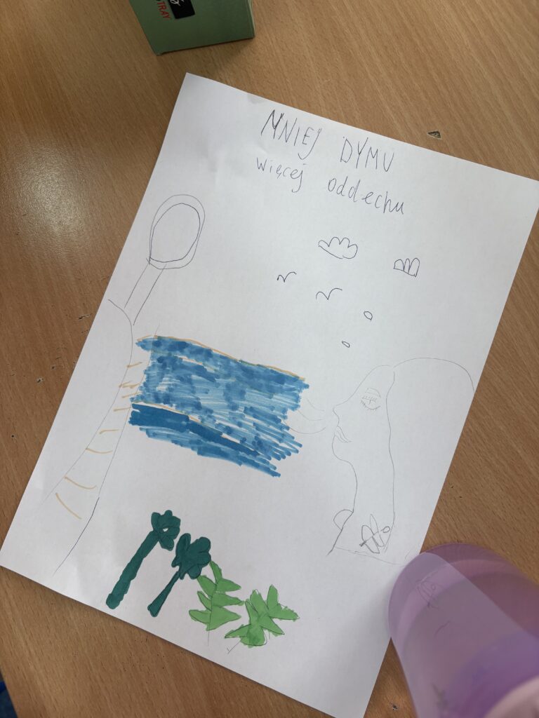 Naszym celem było uświadomienie innym, że czym mniej dymy tym lepiej – dym to naszym zdaniem najgorsze zło dla powietrza. Zrobiliśmy na podstawie wygenerowanego obrazka w chacieGPT swoje obrazy, wzorując się na nich – hasło dodaliśmy również do tych obrazków 😉