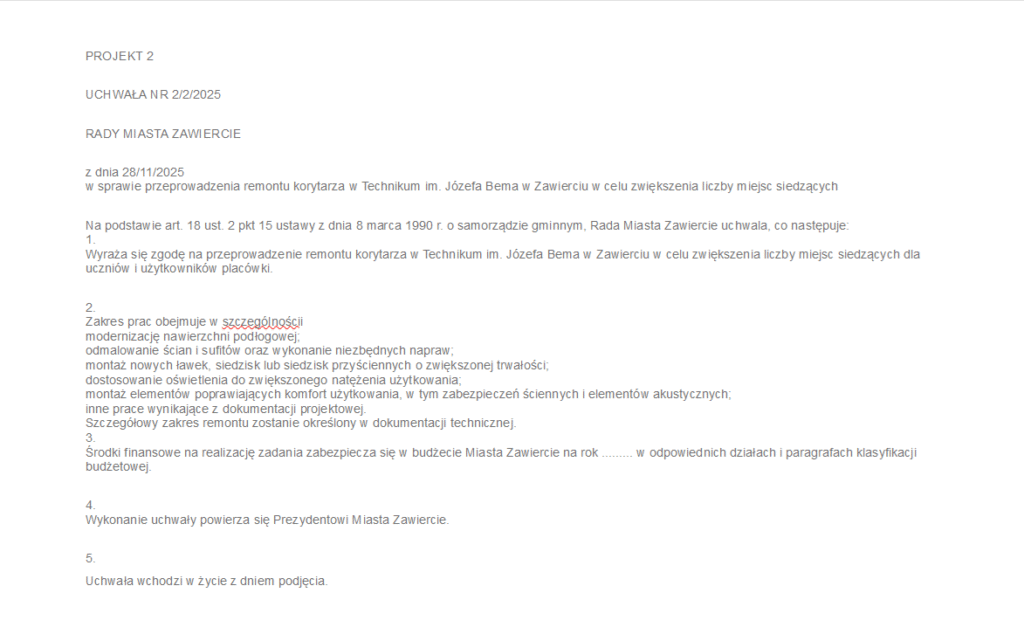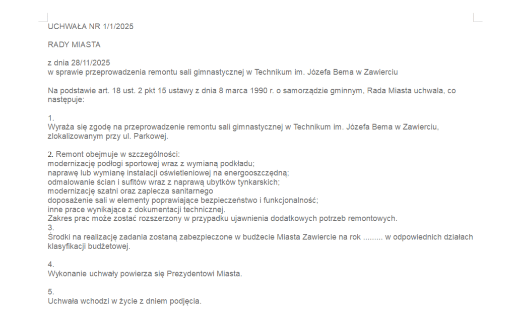 Wśród zdjęć z sesji naszej rady jest też screen podjętych uchwał.