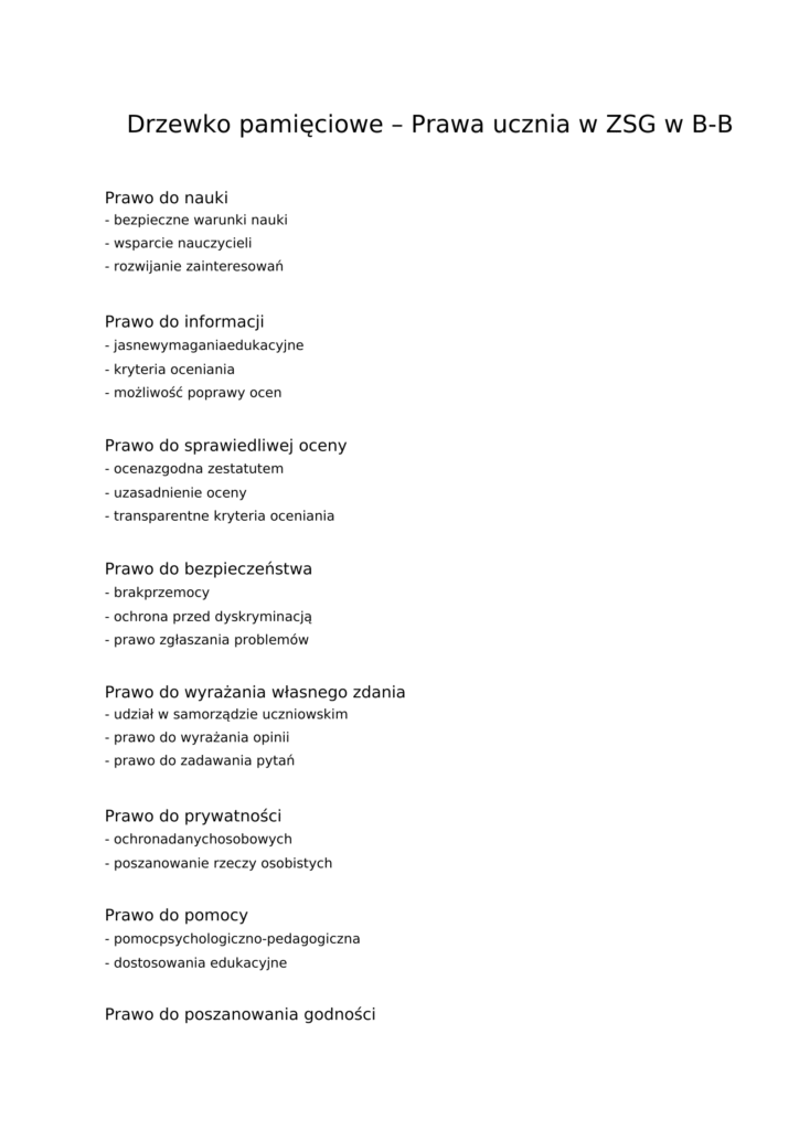 Przegląd zapisów dotyczących praw ucznia w ZSG w Bielsku-Białej.