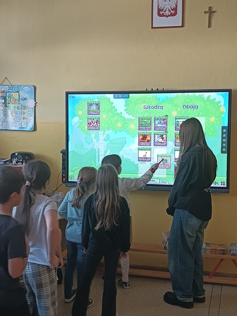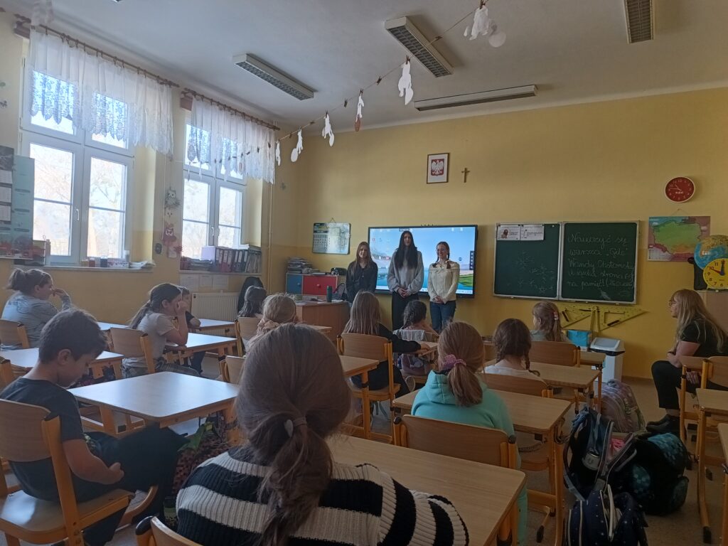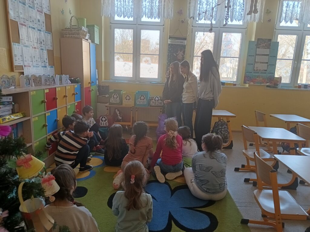 Zaplanowałyśmy i przygotowałyśmy warsztat ekologiczny dla dzieci w wieku 7 lat w SP 4 w Łaziskach Średnich. Lekcja była dość różnorodna, ponieważ dzieci miały możliwość uczestniczyć w grach na tablicy dotykowej, była też prezentacja zagadnienia oraz zabawa „na dywanie”, gdzie dzieci doświadczały prawdziwego segregowania odpadów do pudełek, które również zrobiłyśmy na potrzeby warsztatu. Dzieci były bardzo zaangażowane, energiczne, i bardzo aktywne:) Byłyśmy zachwycone ich wspaniałym przyjęciem naszego warsztatu u nas samych. To było wspaniałe doświadczenie, którym się wcześniej nieco stresowałyśmy, bo każde wystąpienie publiczne jest obwarowane stresem, ale cieszymy się, że przełamałyśmy to i wyszłyśmy ze strefy komfortu. Mamy nadzieję, że to doświadczenie będzie procentowało i przyda nam się w dalszym życiu.