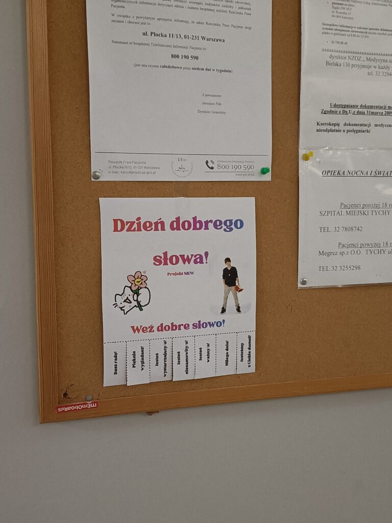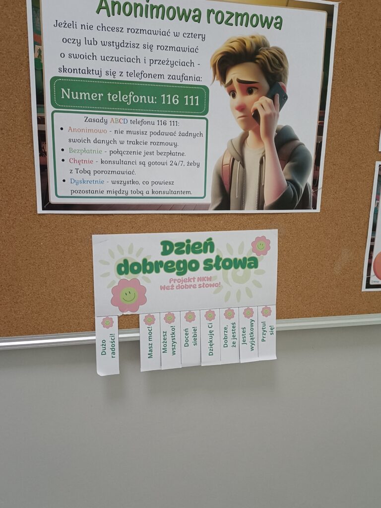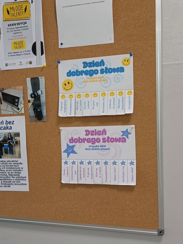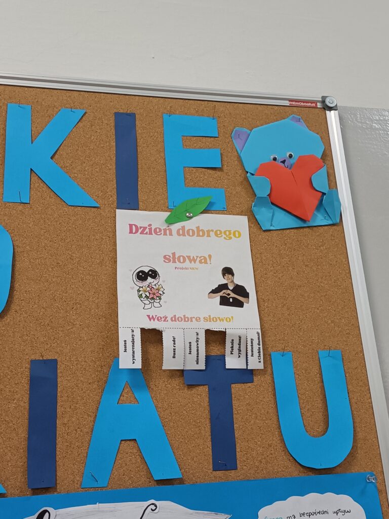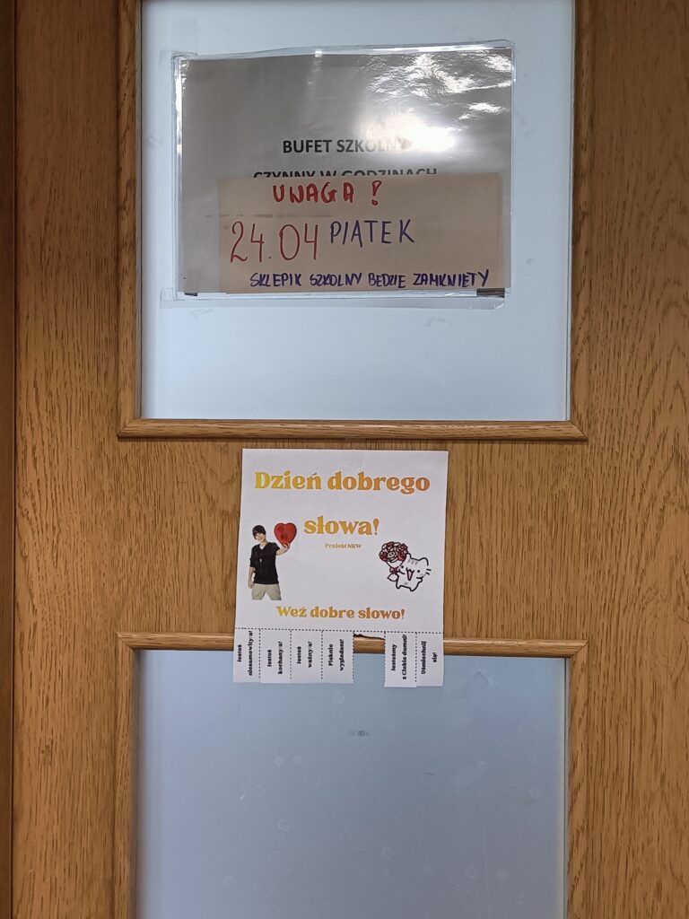 23 kwietnia wolontariuszki przygotowały i rozwiesiły na terenie naszej szkoły kartki zrywki. Stworzyły one plakaty z małymi karteczkami do urwania, by każdy mógł wziąć udział i poczęstować się miłym słowem!