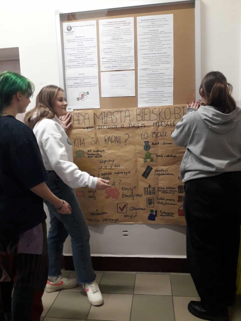 Prace nad projektem obejmowały również selekcję najważniejszych treści, opracowanie graficznej formy prezentacji oraz przygotowanie raportu podsumowującego. Wszystkie działania miały na celu rozwijanie świadomości obywatelskiej i pokazanie, jak młodzi mieszkańcy mogą świadomie uczestniczyć w życiu lokalnej społeczności.