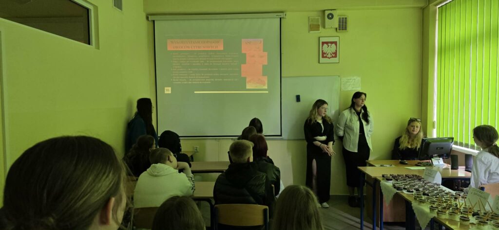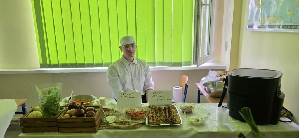 Następnie przeprowadzono część praktyczną, w której zaprezentowano przykłady potraw przygotowanych z produktów, które często są wyrzucane. Warsztaty zakończyły się degustacją dań wykonanych przez uczniów, takich jak deserki owocowe, frytki z marchwi, pieczone ziemniaki oraz kulki serowo-ziemniaczane. Działania miały na celu zwiększenie świadomości ekologicznej oraz kształtowanie nawyków odpowiedzialnego gospodarowania żywnością.